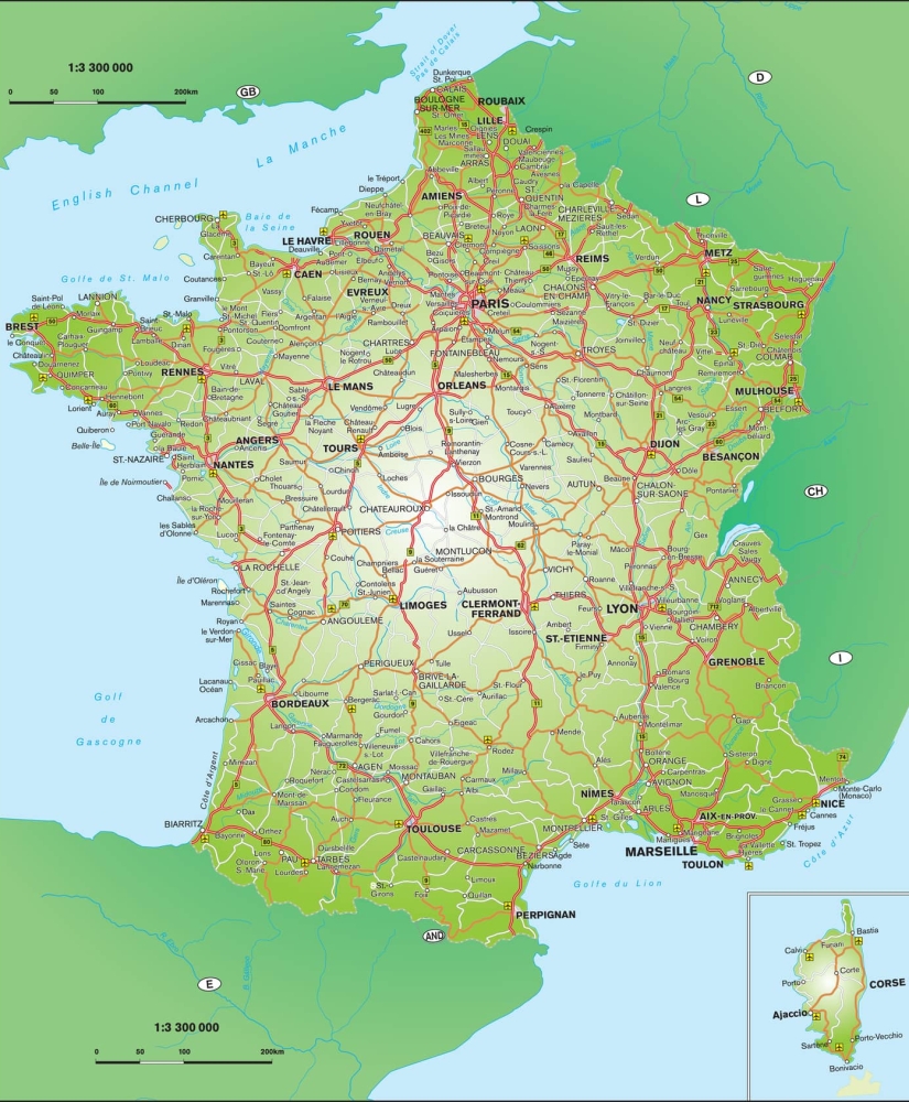 Landkaart Frankrijk Natuurkundig Vector Map